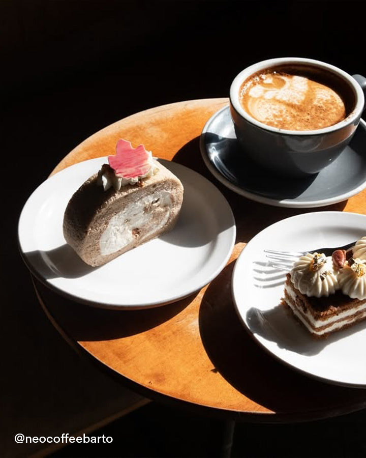 NEO COFFEE BAR boasts three modern locations adorned with refreshing, minimalist designs. Renowned for its delightful coffee and heavenly Japanese-style treats, guests can witness the whole preparation firsthand through the glass wall.
