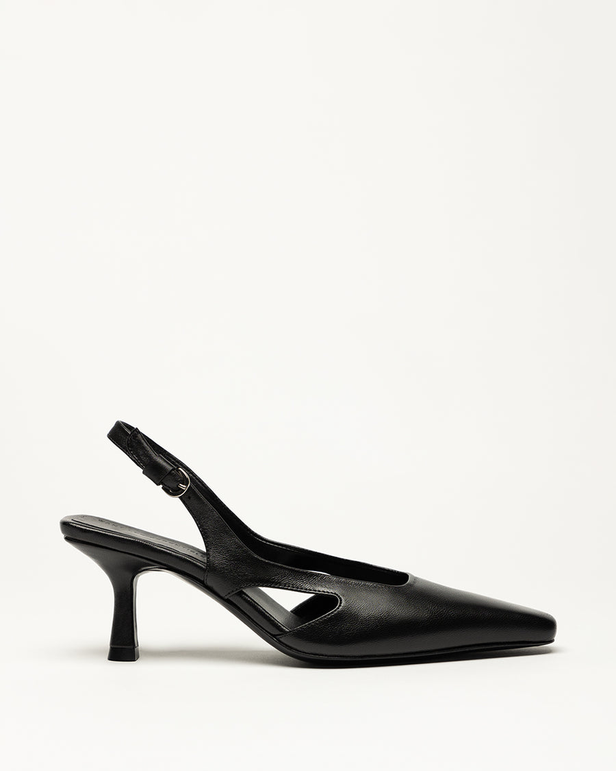 The streamlined silhouette of this design is enhanced by curves and angles that flow seamlessly from heel to toe, complemented by rich yet subtle details that contribute to its refined shape. With a smooth leather-covered footbed and a modest heel, this slingback provides comfort and versatility, effortlessly transitioning from casual to dressy occasions and establishing itself as a wardrobe staple.